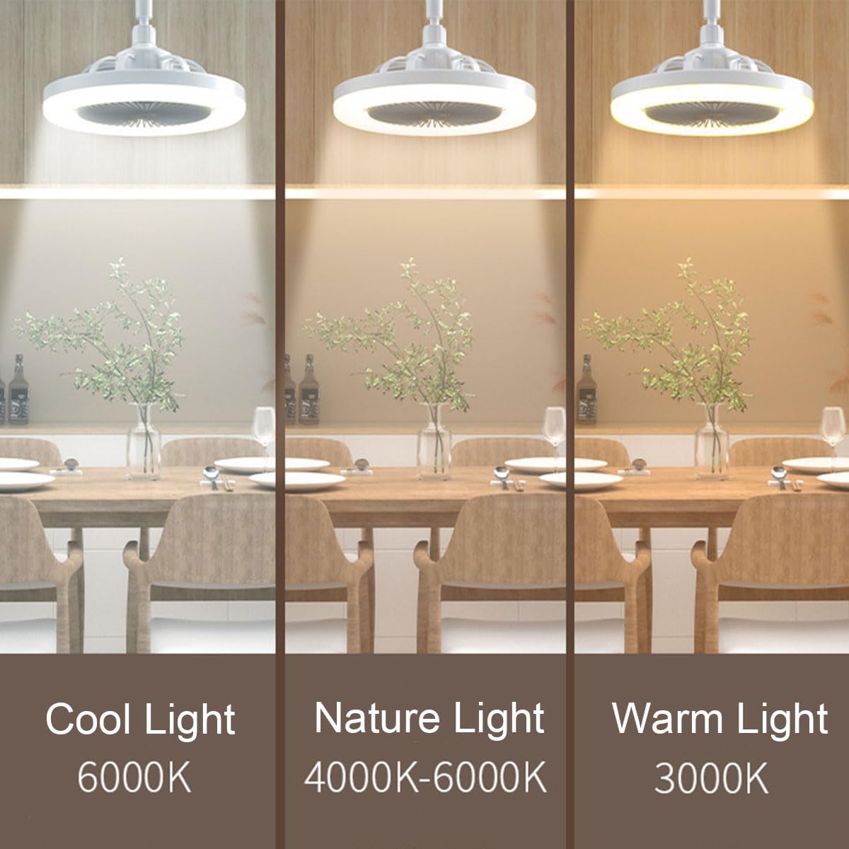 El VENTILADOR DE TECHO CON CONTROL REMOTO de luz y ambientador de fragancia, alto brillo de 3 velocidades de viento, ajuste multiángulo. La luz del ventilador utiliza un enchufe de rosca estándar E27, se controla mediante un interruptor común, no necesita instalar un controlador especial. Puede crear un ambiente de vida cómodo, ventilador de techo con luz mejora la calidad del sueño.