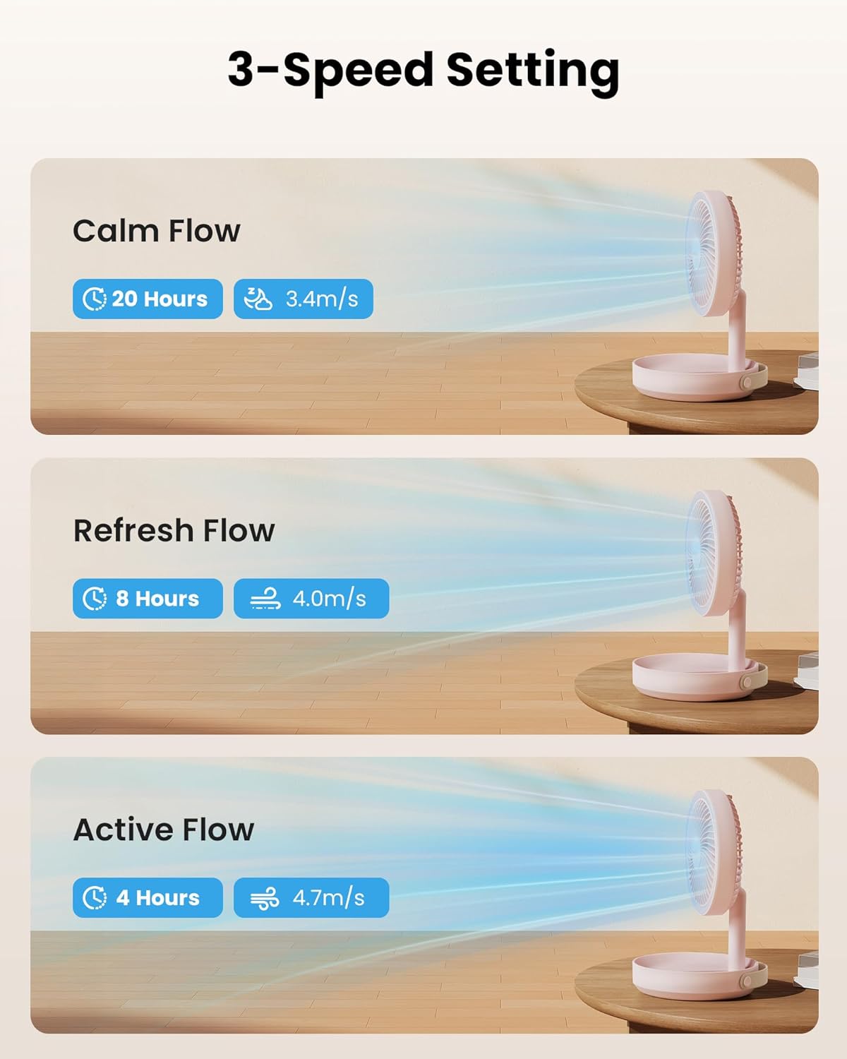 "Refrésquese y busque comodidad con un abanico adecuado para usted, fácil de manejar para usted o un ser querido."